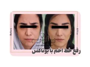 در تصویر بالا میتوانید نمونه کار قبل و بعد از تزریق بوتاکس خط اخم را مشاهده نمایید.