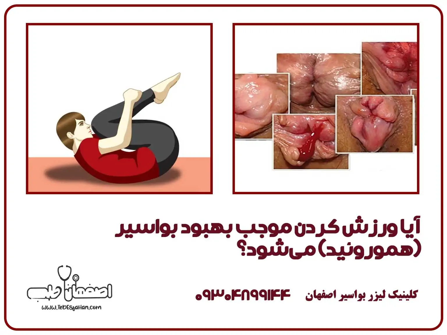 ورزش کردن به‌طور کلی باعث بهبود جریان خون، کاهش یبوست، تنظیم وزن و تقویت عضلات کف لگن می‌شود؛ که همگی از عوامل مهم در کنترل و بهبود بواسیر هستند. اما در مقابل، برخی حرکات ورزشی پرفشار مانند وزنه‌برداری یا اسکوات سنگین ممکن است باعث افزایش فشار داخل شکم و تشدید علائم شوند.